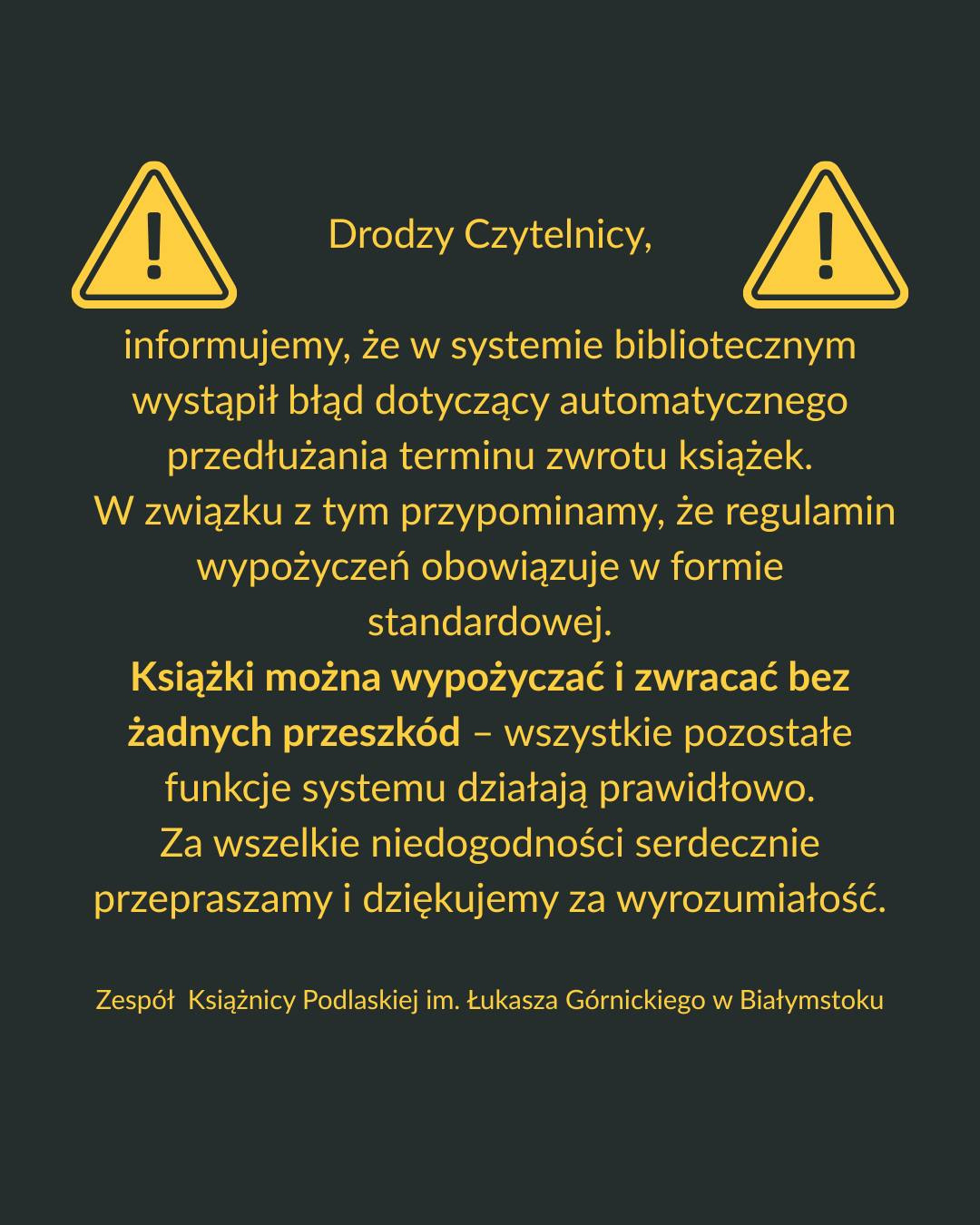 - Książki możecie zwracać i wypożyczać bez przeszkód,